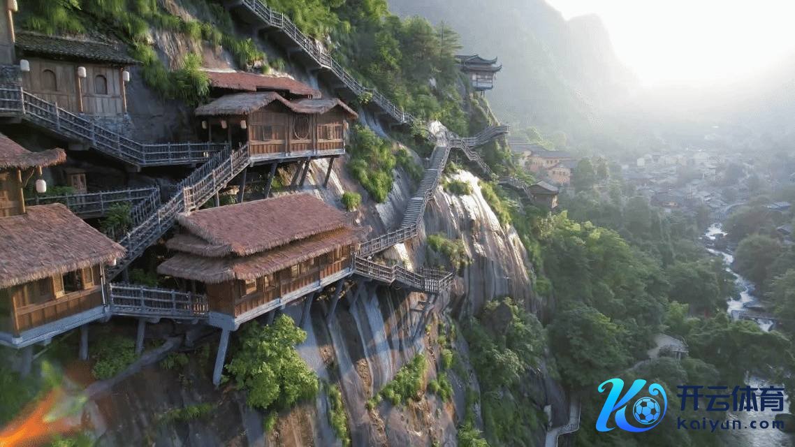 绝壁间木质楼阁依山势层叠铺展