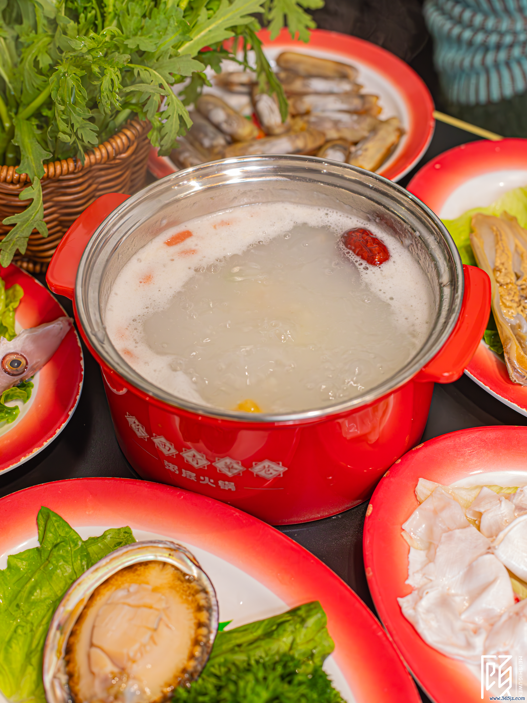 粥底内部是薏米和干贝、虾米,自带幽香。简便的锅底建树不错更好地凸显食材的本味,粥底暖锅三步走,吃起来愈加适口。