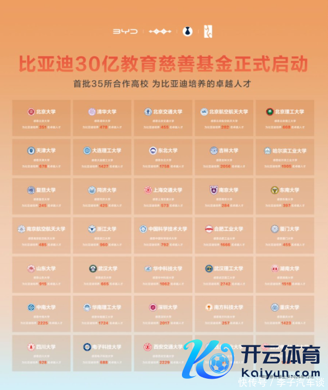 日前,比亚迪在深圳总部举行了30亿西宾慈善基金的运转典礼开云体育(中国)官方网站,要知谈,比亚迪的发展也离不开科教兴国战术的支援,更离不开各大高校培养的不凡东谈主才,而比亚迪此举,也恰是回馈科教兴国战术的一大有劲作为。
