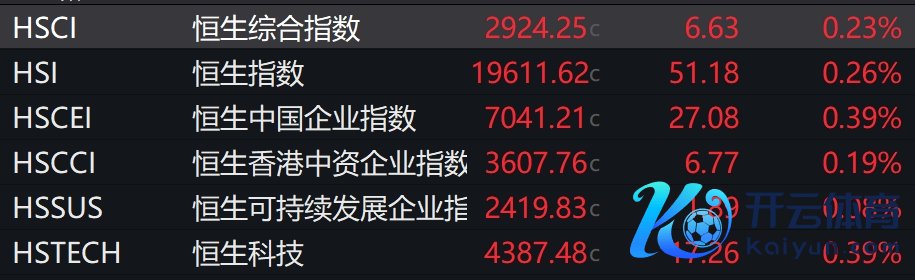 港股高开,恒指涨0.26%,恒生科技指数涨0.39%;弘浩国际控股涨超58%,携程集团涨逾3%领涨蓝筹,金蝶国际涨超3%。