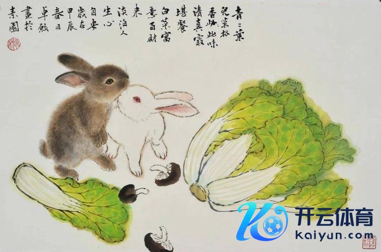 ◎2024年 46x69cm 白菜双兔