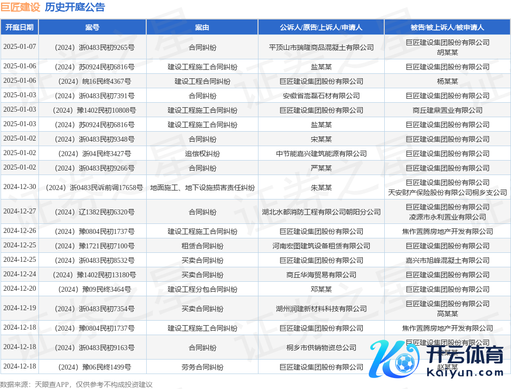 本站音信开yun体育网,凭证天眼查APP判辨,近日公布了一则行家建立集团股份有限公司当作原告/上诉东说念主的开庭公告,详备执行如下: