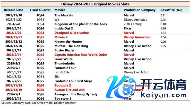 一季度内容销售收入不息同比大幅增长 34%,上季度又《头脑特工队 2》、《死侍与金刚狼》,这个季度《海洋奇缘 2》也爆了。《海洋奇缘 2》全球票房破 10 亿好意思元,位列 2024 年票房第三。至此,迪士尼得益了 2024 年全球电影票房 Top1-3,电影大丰充年好意思满收官。