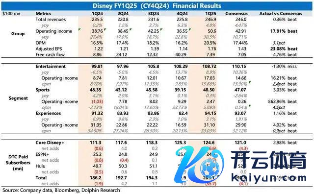 迪士尼好意思东时辰 2 月 5 日好意思股盘前发布了 2025 财年第一季度(CY25Q1)功绩。主要亮点在盈利上,在收入无惊无喜下,三伟业务的讨论利润均显贵超出阛阓预期: