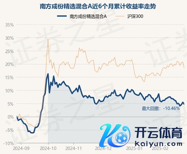 本站音讯,2月28日,南边成份精选羼杂A最新单元净值为0.5736元,累计净值为1.9662元,较前一往将来下降0.69%。历史数据披露该基金近1个月下降3.6%,近3个月下降0.98%,近6个月高潮4.73%开云体育(中国)官方网站,近1年高潮3.07%。该基金近6个月的累计收益率走势如下图: