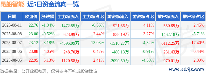 本站音讯欧洲杯体育,散伙2025年8月11日收盘,昆船智能(301311)报收于22.76元,着落1.04%,换手率11.32%,成交量9.87万手,成交额2.24亿元。