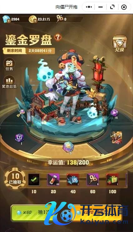 就在大年月吉,腾讯那款《向僵尸开炮》的小游戏,好意思滋滋上线了“鎏金罗盘”春节氪金四肢。筹划的算盘打得震天响:用0.01%的超低概率吊着,用一堆鸡肋谈具填满保底兑换,就等玩家们为了一年都抽不到的“中枢”上面,乖乖掏空钻石。