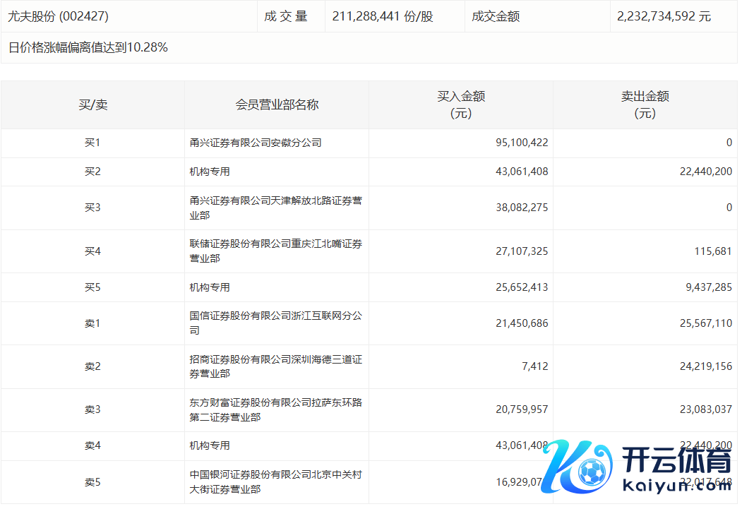 尤夫股份本日涨停 甬兴证券安徽分公司席位净买入9510.04万元开云体育尤夫股份本日涨停 甬兴证券安徽分公司席位净买入9510.04万元