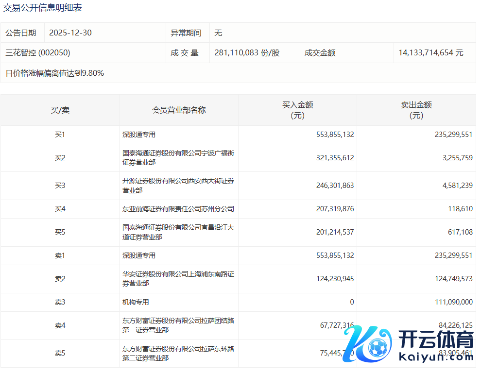 三花智控本日涨停开yun体育网,深股通专用席位买入5.54亿元并卖出2.35亿元三花智控本日涨停,深股通专用席位买入5.54亿元并卖出2.35亿元