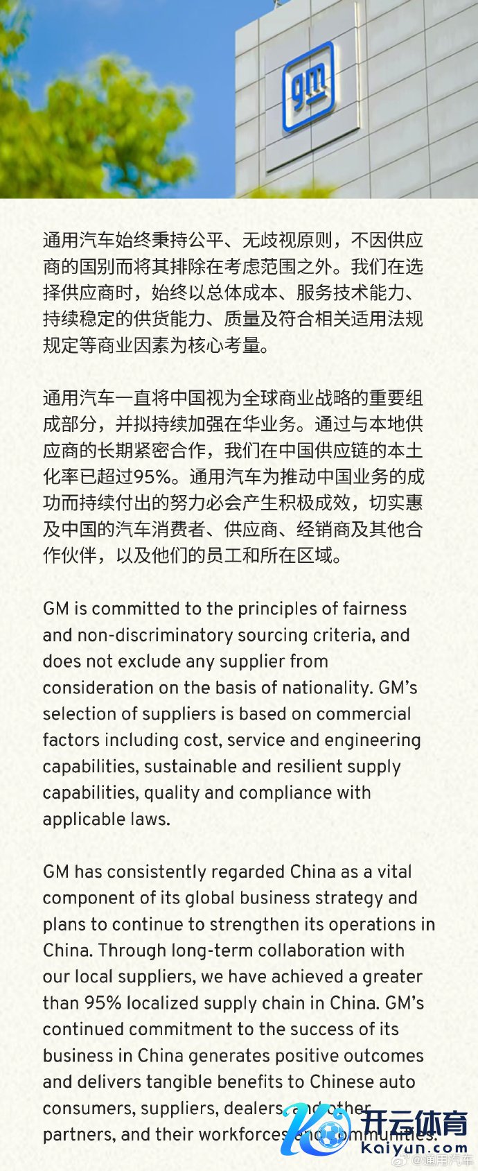 通用汽车:公司在中国供应链的原土化率已进步95%通用汽车:公司在中国供应链的原土化率已进步95%