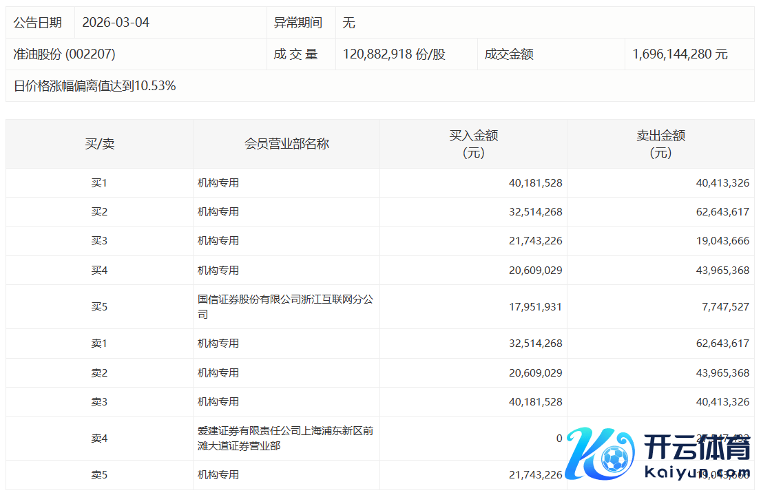 准油股份当天涨停开云体育,有3家机构专用席位净卖出5371.75万元准油股份当天涨停,有3家机构专用席位净卖出5371.75万元